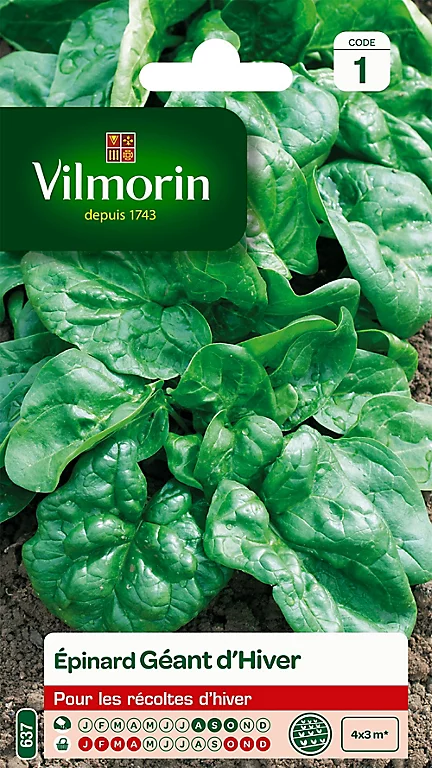 Variété productive, très résistante au froid, adaptée aux récoltes d’hiver. Grandes feuilles vert foncé presque lisses