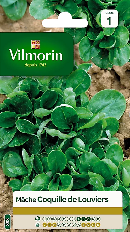 | Instructions pour plantation | La nature du sol a peu d'importance pourvu qu'il soit ferme et sans mauvaises herbes. La mâche est peu exigeante, maintenez simplement un sol frais par des arrosages réguliers .Semer en place d'août à octobre à la volée ou, de préférence, en lignes distantes de 20 cm. Protéger éventuellement les derniers semis par un tunnel pour prolonger la récolte au printemps. Récolter de septembre à mars |