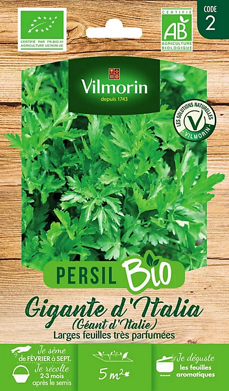 Originaire des régions méditerranéennes et connu depuis l’Antiquité, le persil est l’une des herbes aromatiques les plus cultivées dans le monde. Cette variété aux larges feuilles est la plus parfumée de tous les persils communs.