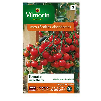 La tomate Sweet Baby ou tomate cerise est une variété récente particulièrement vigoureuse. La tomate « sweet baby » donne de très nombreux petits fruits ronds d?un superbe rouge brillant. Ses tomates (environ 12g) réunies en longues grappes se récoltent entre juillet et septembre. Sa chair juteuse et douce est délicieusement sucrée. Une variété idéale en salade ou même à l’apéritif. Très productive, il est également possible de la cultiver en pot. La tomate aime la proximité des herbes aromatiques car leur présence la protège des ravageurs.
